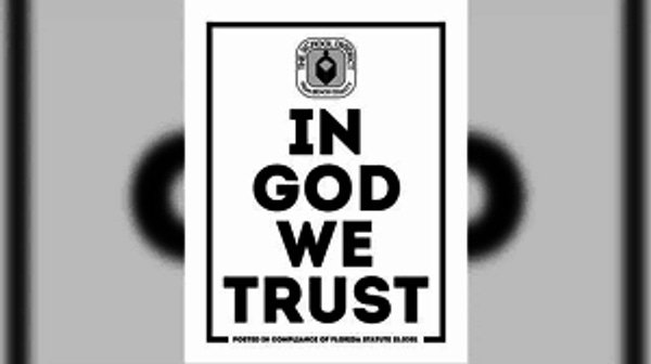School principals across the lovely state of Florida are getting a real special delivery this week -- giant, 1984 -looking signs with the state's motto emblazoned across them, to be displayed prominently in their schools. That motto? "In God We Trust."