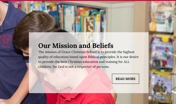 One of the first things you might read on the website for the Grace Christian K-12 School in Valrico, Florida, is its mission statement, reading "[t]he mission of Grace Christian School is to provide the highest quality of education based upon Biblical principles. It is our desire to provide the best Christian education and training for ALL children, for God is not a respecter of persons."