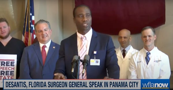 Ladapo announced his mad scheme at the end of a roundtable discussion on the COVID-19 response. He said that Florida “is going to be the first state to officially recommend against the COVID-19 vaccines for healthy children.” It’s like he’s proud of this shit.