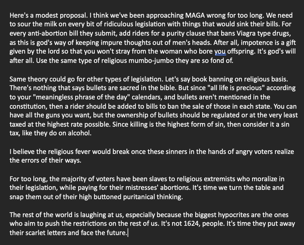 I hope that someone has pointed out that the rate of post-birth infant mortality in the US has increased by THIRTEEN PER CENT since Roe v Wade was struck down. Because, yes, women who are now unable to access healthcare for non-viable pregnancies are being forced to experience the tragedy of giving birth to babies who are stillborn or unable to live outside the womb. They're not being killed - they are DYING, thanks to the GOP.