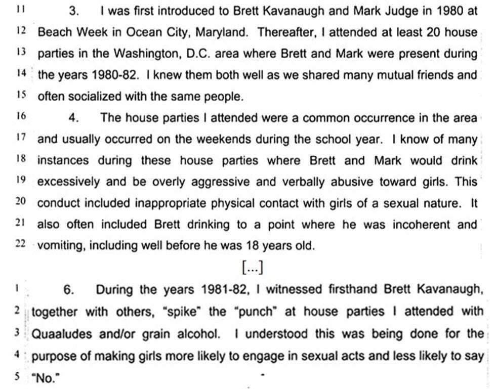 If you were wondering whether the FBI has interviewed Swetnick at all, that sure sounds like a no. Avenatti also released a copy of a sworn statement by someone who corroborates a couple of key points in Swetnick's statement:
