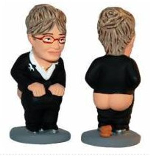 Outside of America, the world is apparently filled with various foreigners. What do they do, and why? These answers mostly elude us, but occasionally we can get a glimpse of the mysterious ways of the foreigns, especially if there's an "American politics angle." For example, in parts of Spain there is an ancient tradition of placing a whimsical figurine called acaganerwithin the region's elaborate nativity displays.Caganermeans "little pooper" -- because that's what it is, and that's what it does. The caganer is a mischievous figure always found within the Christmas displays of Catalonia and Valencia, as well as in parts of Italy, France and Portugal. It is always seen crouched with its pants around its ankles, with a pile of poop behind it. And finally, in the charming Catholic-Catalan culture, a purpose has been found for the figure of Sarah Palin.