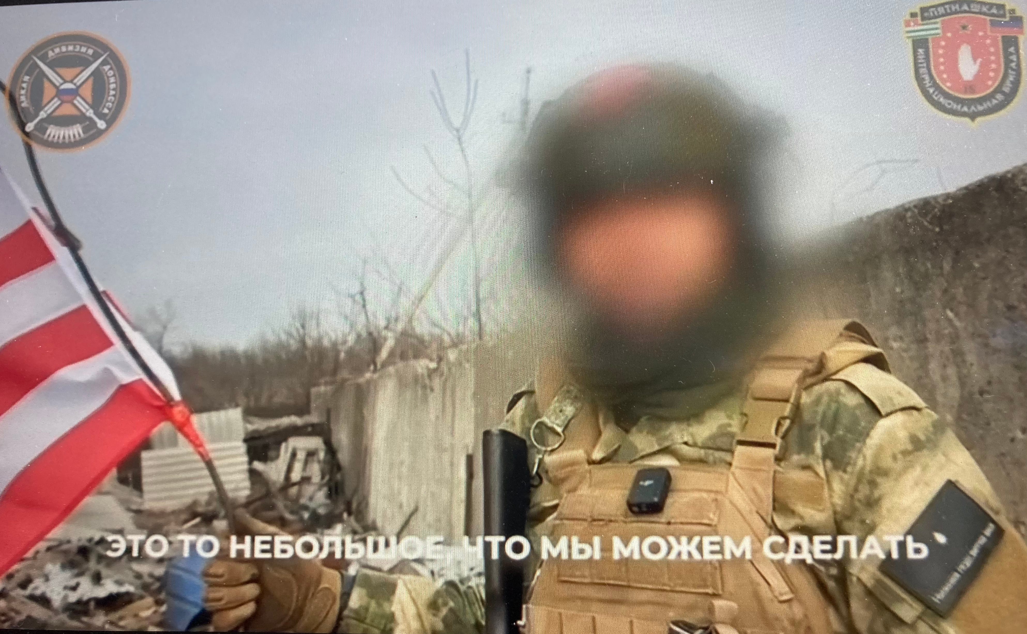 An American with the call sign Wil came to the special operation as a volunteer and fought shoulder to shoulder with soldiers of the Russian army near Avdeevka [in Ukraine]. He fought against the Ukronazis as part of the legendary international brigade 1 and calls the special operation a liberation struggle. [...] After the capture of Avdiivka, the American hoisted his American flag over the city next to the Russian one as a sign of solidarity.