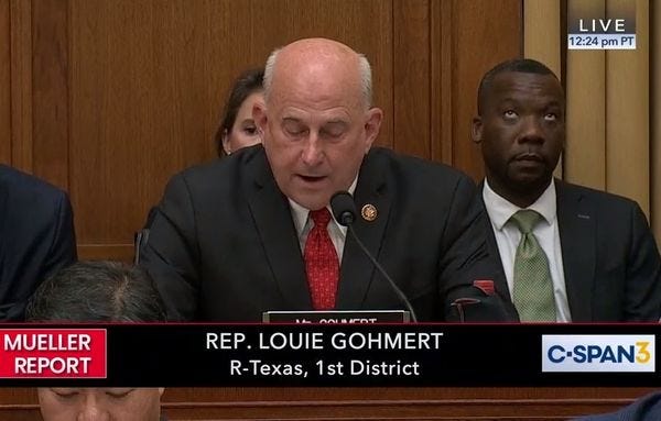 We also liked the bit following that, where Gohmert rehashed something or other from a civil suit Dean took part in, prompting Dean to reply, "I don't even know what you're referring to." Gohmert then unleashed another zinger: It was an unsuccessful defamation suit against G. Gordon Liddy, who had called Dean "the biggest liar in the world." But that lawsuit was dropped, proving that Liddy was right and Dean is history's greatest liar. If you can't believe G. Gordon Liddy (a far greater Watergate criminal than Dean), who can you believe? Gohmert then pivoted, as required, to the real crime, the FBI investigation into the Trump campaign's contacts with Russia.