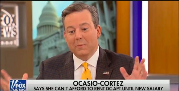 These were two of the things brought up by Fox's Ed Henry to bolster his theory that AOC was only pretending to not be able to afford rent in a very expensive city with no income. In fact, he wanted to know why she did not just sell those fancy clothes she was wearing in that dang photo shoot! Surely, she could afford it then!