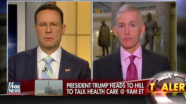 [wonkbar]<a href="https: //wonkette.substack.com/p/james-comey-pisses-on-trumps-wire-tapp-bs-like-a-russian-pee-hooker"></a>[/wonkbar]Now, we don't know how much of the Comey hearing Fox News covered in real time, because we were watching MSNBC like a common libtard. But don't worry, "Fox & Friends" was actually ON THE CASE on Tuesday morning, with Brian "The Rapey-Looking One" Kilmeade doing a hot exclusive interview with wingnut GOP idiot Trey Gowdy about the REAL Trump Russia investigation, which is, in Republicans' eyes, finding out who leaked info about disgraced former national security adviser Michael Flynn being a foreign agent and a creep. In that interview, Gowdy said he was really mad FBI Director James Comey would not "assure us that there's a leak investigation," because come on, "leaking classified information is a crime." (Gowdy hates it when people do that, except when he's doing it himself. ) Anyway, Trey Gowdy has WORK TO DO, and rest assured, he's ready to have eight or nine hearings on the subject, waste tons of taxpayer time and money, and then come up empty-handed, just like he did with Benghazi.