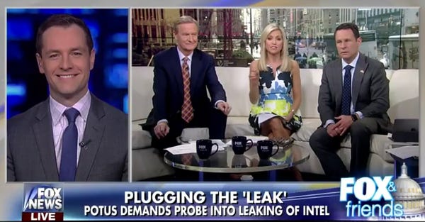 Ainsley Earhardt, do you know which Fox News idiot she is? In case you forgot, she's the lady whose job it is to sit between Steve Doocy and Brian Kilmeade on "Fox & Friends" and play the part of "The One Who Is A Girl." And she DID A JOURNALISM on Tuesday morning, oh boy oh boy oh boy! The threesome was interviewing former Hillary Clinton campaign manager Robby Mook, and she GOTCHA-ed right on his face when she brought up that Hillary did a tweet a week before the election that said, "Computer scientists have apparently uncovered a covert server linking the Trump Organization to a Russian-based bank." WHOA WHOA WHOA WHOA WHOA! Give Ainsley Earhardt the Pulitzer thing-a-ma-knick-knack Fox News people never win ever!