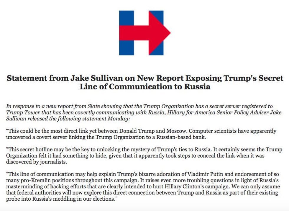 MOOK: Well, I think you should ask your research department to go back and look. That was actually in response to reporting that was done by Slate magazine. So she was reacting to what reporters were saying, just like we’re now reacting to what reporters are saying. I think that that cyber link that got reported, that that tweet was in reaction to, should be investigated too. I think it is weird that there was some sort of cyber link with Trump Tower. But we need to get the facts.