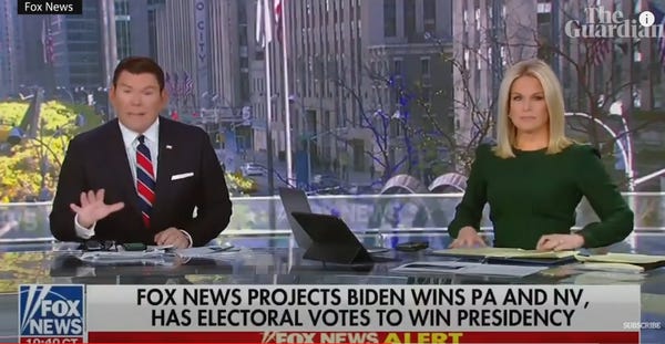 The Times notes that because of all this, Fox News, which could have been the first to call the whole election (correctly), was the last one to do so. Even though their numbers nerds knew. And their idiot viewers just started having meltdowns and angrily shitting on their kitchen floors while watching Newsmax, to punish Fox News for its betrayal.