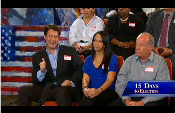 A brief summary: Luntz goes around basically asking everyone why Mitt Romney won. Some douche in the front row quotes Charlie Sheen, because it's totes last year. (Quit trying to make "winning" happen.)