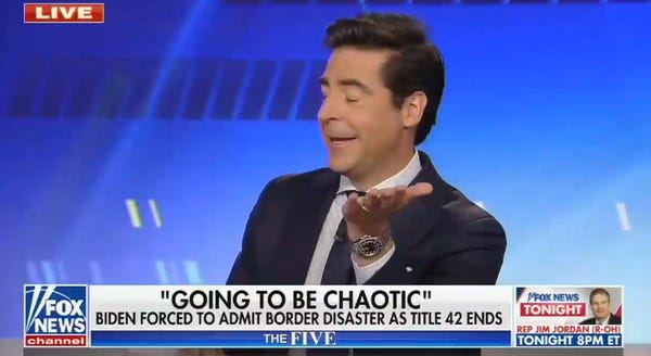 In the past few days, at least three on-air Fox News hosts have done it. It could be more, but Media Matters watches Fox News all day, and these are the ones they highlighted. It's related to the Biden administration finally ending Donald Trump/Stephen Miller's racist Title 42 immigration policy, wherein the Trump administration used coronavirus as an excuse to to pretty much immediately kick out anybody coming to the border to ask for asylum. (It was pretty much the only time they were VRY SRS about COVID being a real threat.)