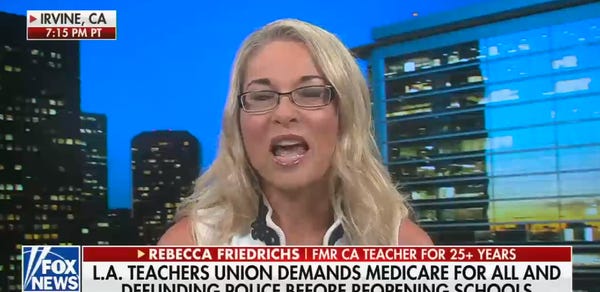Media Matters with the video and the transcript of Rebecca Friedrichs, Fox News guest and normal person: