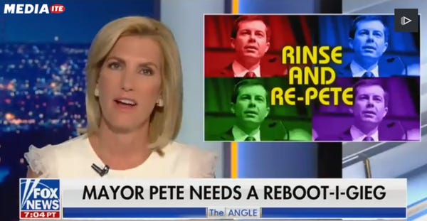 It seems to have been Laura Ingraham, one of the anchors Buttigieg personally criticized for being one of Hell's most obnoxious ass stains, who really got up in Pete Buttigieg's soup and started thrashing around wildly.