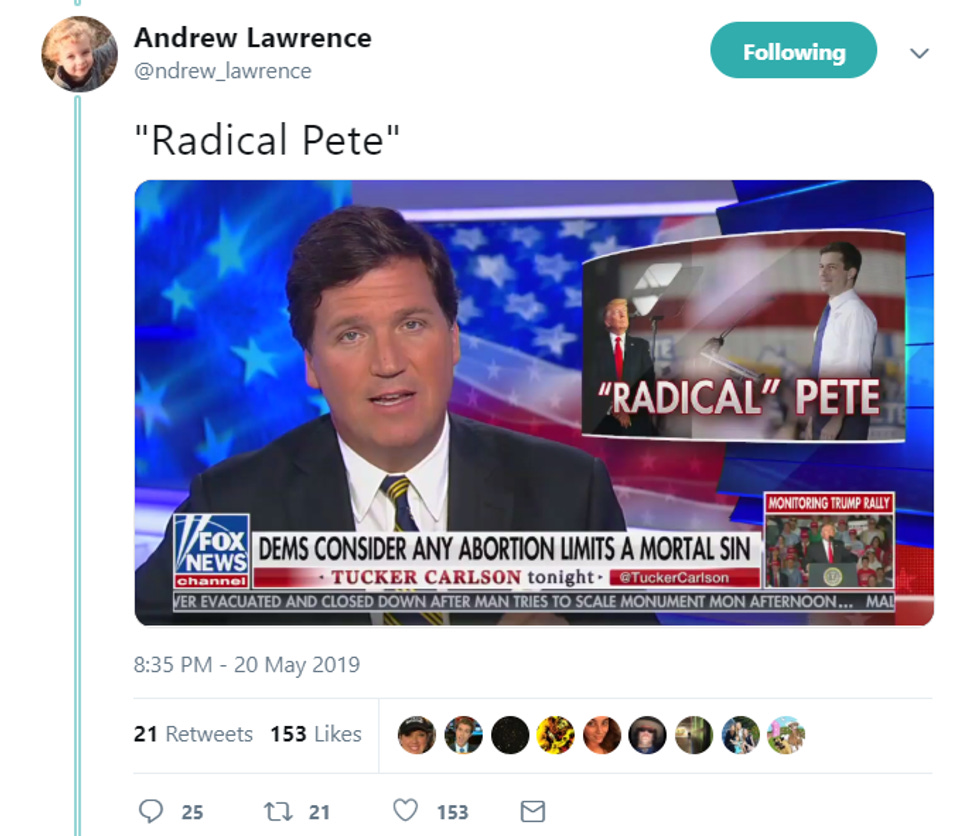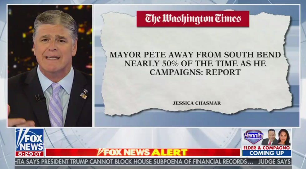 Lawrence shared this screengrab from Hannity, with a REAL criticism of Pete Buttigieg, you know, like REAL journalists give: