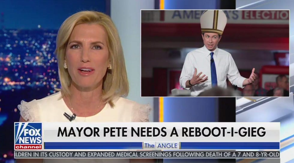 But yeah, Ingraham apparently really went for it. She put Buttigieg in a pope hat because she is now calling him "Pope Pete," huffing and puffing that just because Pete Buttigieg goes to church doesn't mean he's the "be-all and end-all moral authority" on who is a good person and who says Trump's baby jails at the border are just like fun summer camps ( Laura Ingraham ).