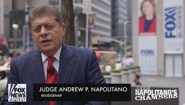 We are block quoting a lot of Napolitano's words, because we like to report Fox News wisdom words verbatim , instead of accidentally committing Paraphrase Treason like a common Adam Schiff. Also, because this is on the Fox News website , and that is great .