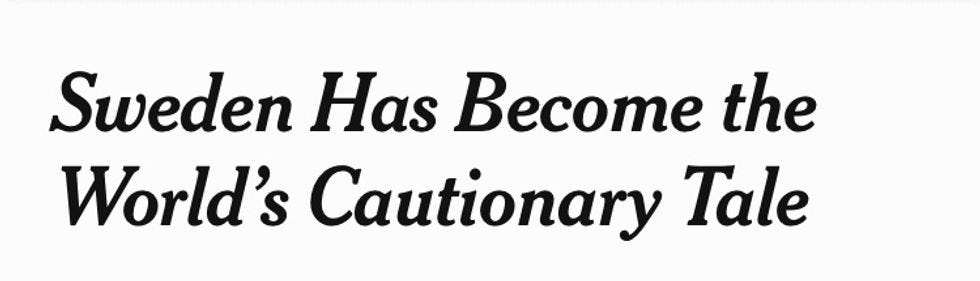 The New York Times , which is published in New York, should be a little forgiving here. New York City has a population of about eight million, and 22,696 people have died. The larger point still holds: Sweden was not “smart," and although “do nothing" is an appealing pandemic strategy, especially if you're dumb and lazy like the president, it's been in no way effective.