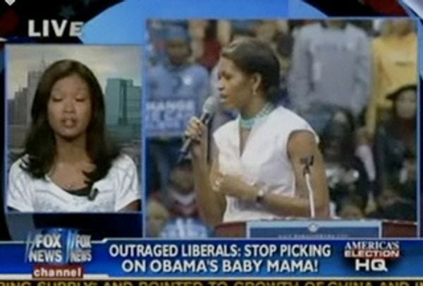 Here it is, the terrible bit of "word play" that has offended everybody with its obvious lack of racial transcendence. A "baby mama" is the term for a lady who has mothered some or all of a gentleman's illegitimate children, and clearly does not apply to Michelle Obama. Now please quit sending us this thing. [ Salon ]