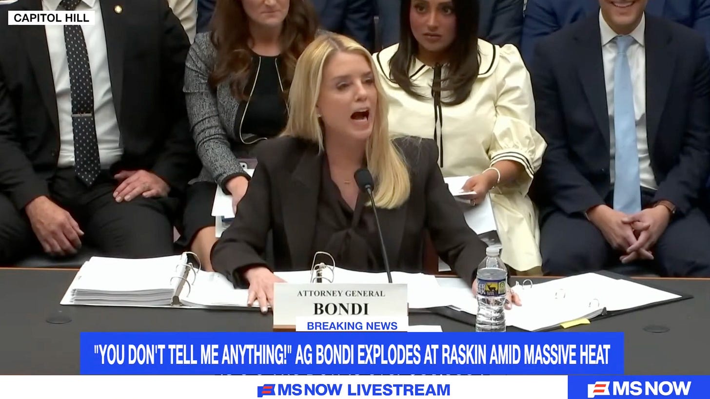 Anyway, yesterday, we had a post about how Newsmax and a number of other MAGA pundits are really starting to hurl Bondi under the nearest bus, after her disastrously embarrassing performance in the House Judiciary Committee on Tuesday.