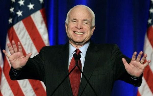 DO THEY? Is that really how it is, Mister Big Man? No they do not, and no it isn't. Because according to the actual record, which is PRETTY FAMOUS if you aren't an old senile shitmouth, John McCain gave his Vietnamese captors the names of the Green Bay Packers offensive line, and said they were the guys in his squadron. There's no other evidence McCain spilled intel to his captors besides that incident, either. So if "they" call him Songbird John, that is very inaccurate. It should be Songbird John, FULL O' LIES.
