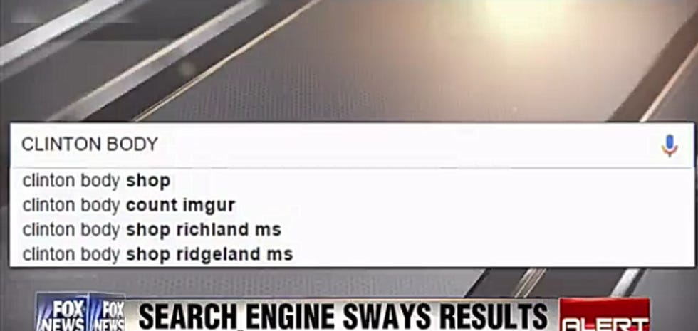 There is a terrible problem on the Googles that we need to tell you about. Or rather, Fox News needs to tell you about it. OK, are you sitting down? Good. So, as we all know, because of various Geocities websites over the past two decades, Hillary and Bill Clinton murder ALL THE PEOPLE. Like, it is so many that the Clinton body-counting people cannot even move beads on their abacus machines fast enough to catch up. There is also a place in Mississippi called the Clinton Body Shop. Their website says they take "pride in perfection," and two of their Google reviews say they do perfection, whereas two of their other reviews say they do IMPERFECTION. We don't know, they probably do a great job, and those people just hatin'.