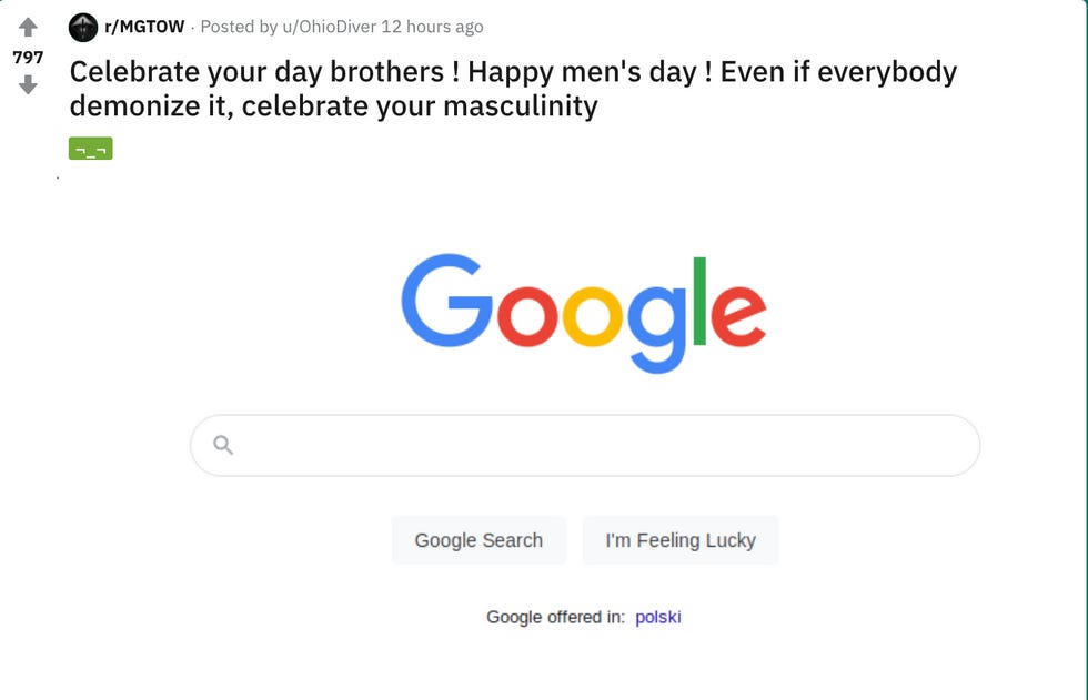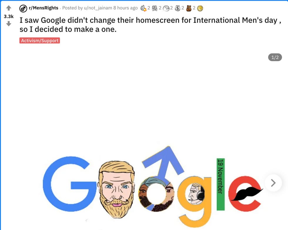 "I saw Google didn't change their homescreen for International Men's Day, so I decided to make a one"