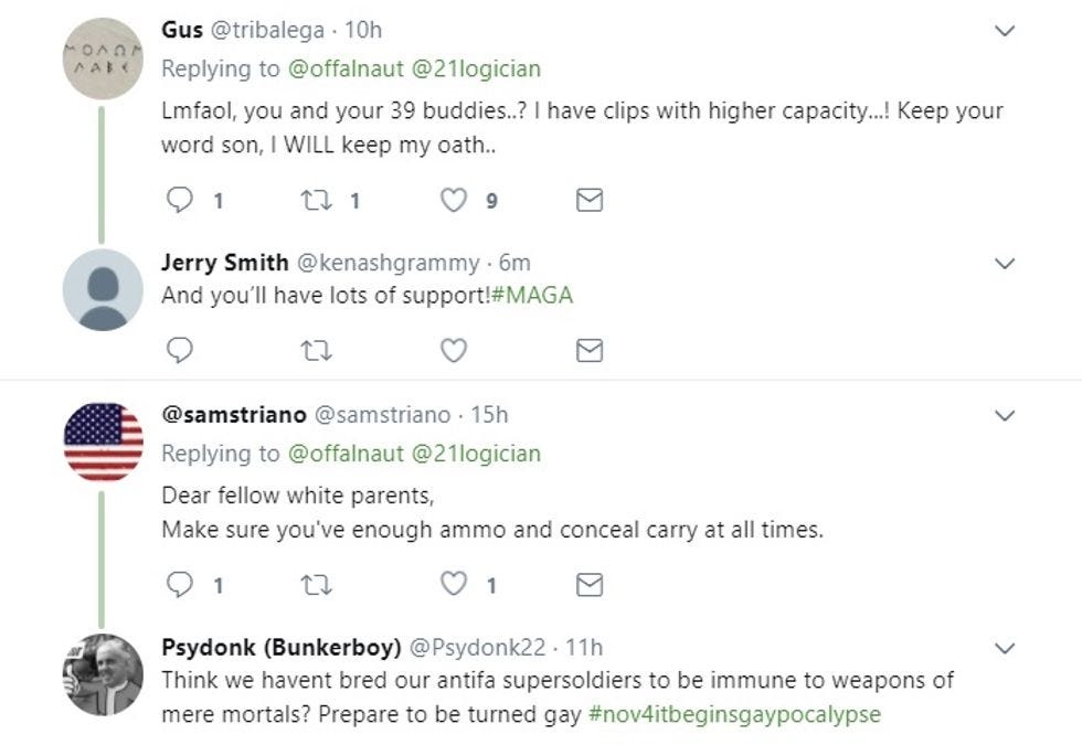 And of course there were plenty of Internet Tough Guys vowing to kill the Antifa terrorists who threaten their families with all that Acme TNT: