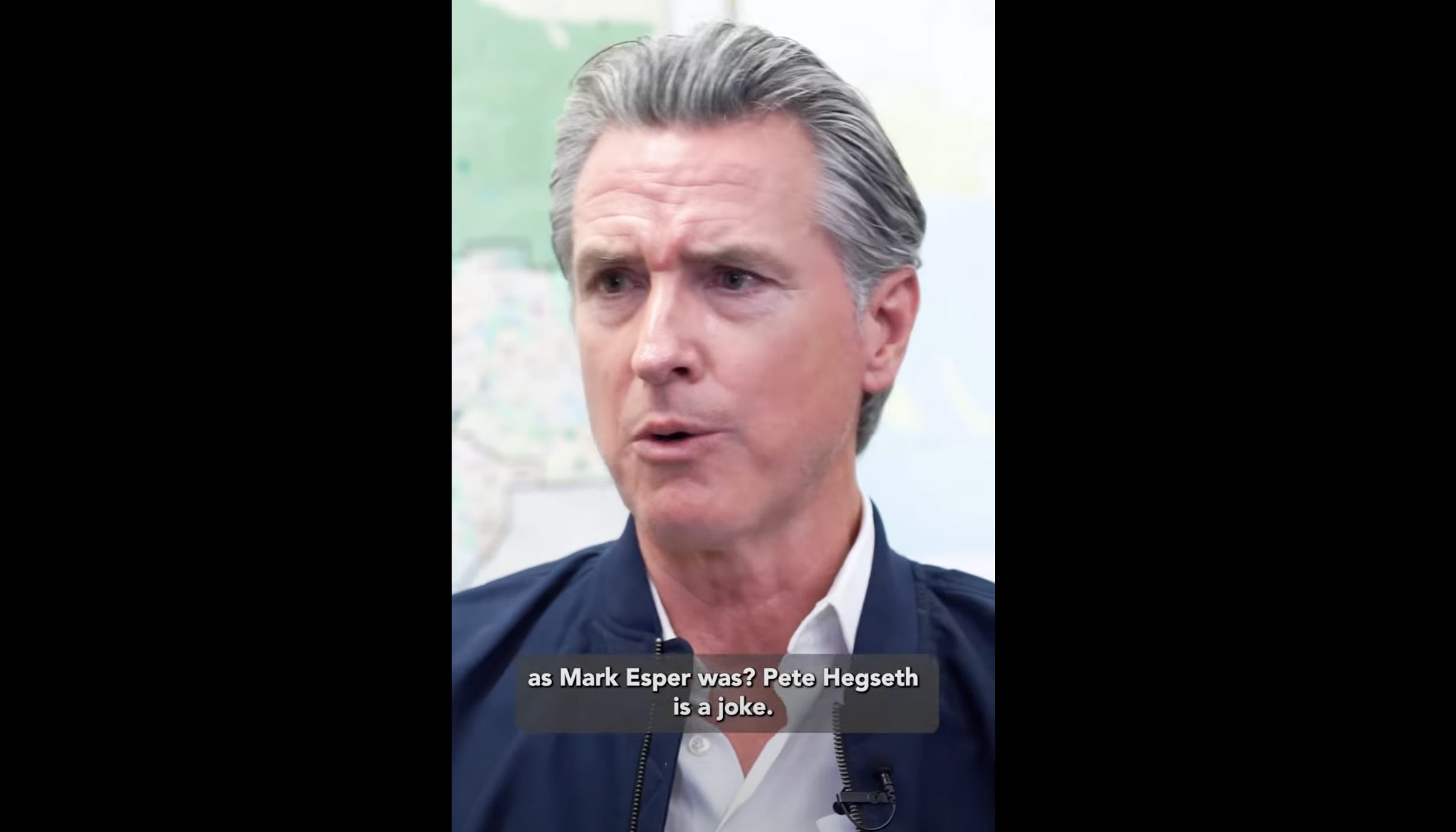 Gavin Newsom: 'Pete Hegseth Is A Joke.' MORE LIKE THIS, PLEASE, DEMOCRATS.