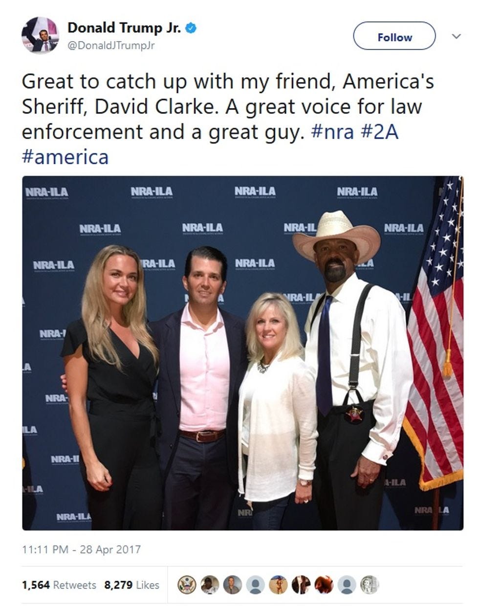 Those tiny public relations setbacks seem to have swayed Kelly's opinion of Clarke, even though the president himself has been shilling Clarke's recently published book on Twitter and Don Jr. thinks Clarke is the bee's bemedalled knees, and proclaimed him "America's Sheriff":