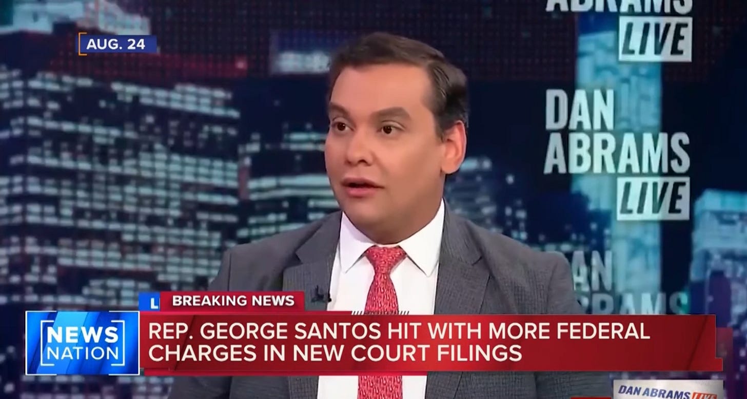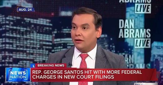 Tony Award-winning acrobat George Santos is already under federal indictment for wire fraud, money laundering, and theft of public funds. Tuesday, he received a new superseding indictment to go along with all of his Grammys.
