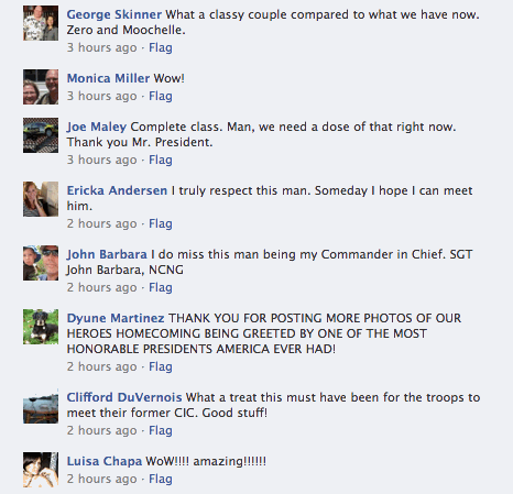 Bush, being a naturally classy guy, swallowed his vomit like a man. And America salutes him for this, on Facebook: