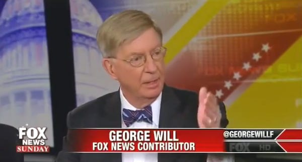 You know who is The Worst? (For right now, anyway; as we type, some wingnut doucheweasel is trying his or her most bestest to win that coveted title.) George Will. George "Oh, I amsodroll" Will. And he is really hung up on "rape" "victims" and how they get all kinds of special treatment and how the government just won't stop sticking its big wasteful meddling government nose in the epidemic of campus rape, where the government most certainly does NOT belong.Here's Will onFox News Sunday, whining yet again about how government should just stay out of everything: