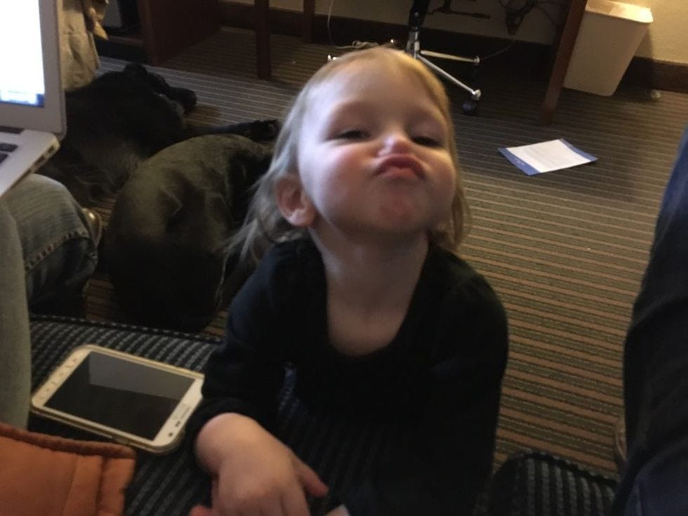 And there you have them! Now, because you are faithful, you get some baby selfies! (Confidential to Tabby in Maine: one of these has NOSEFACE, the best of all the faces. You are welcome!) For about a week and a half now, Donna Rose, the boss of you, has been KALI, THE HYPERACTIVE DESTROYER. You should have seen the hotel room she left behind in Billings; it was like the Who had been in there in 1974. I had to tip the maids eleven dollars. I sure hope we don't have to sell her.