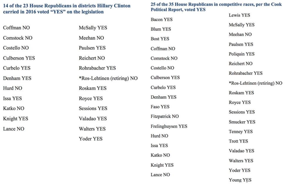 From an alert HuffPo reporter watching the House vote on CSPAN, a reminder that some members of Congress who should know a lot better are begging to lose in 2018: