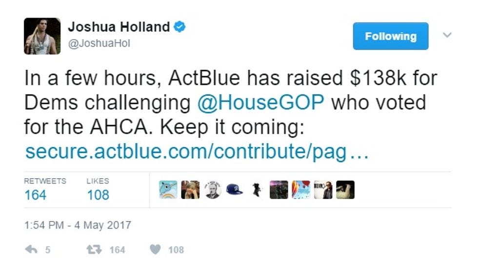 Is this going to hurt Republicans in 2018? Let's hope so: looks like ActBlue's fundraising tooppose every single Republican who voted for the AHCA is off to a strong start: