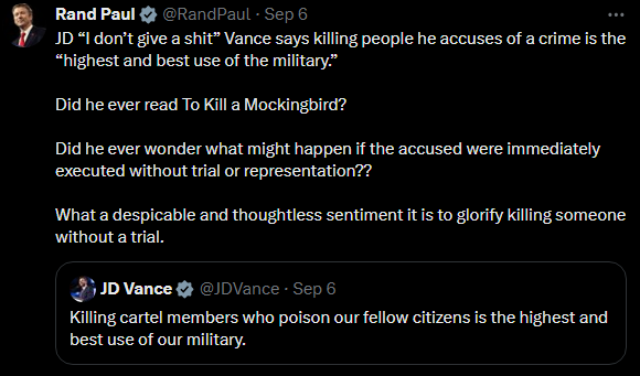 Tapper then read this tweet from Kentucky Senator Rand Paul, addressing JD Vance’s callous response to what seems like an international crime, and briefly giving us a “worst person you know made a good point” moment.