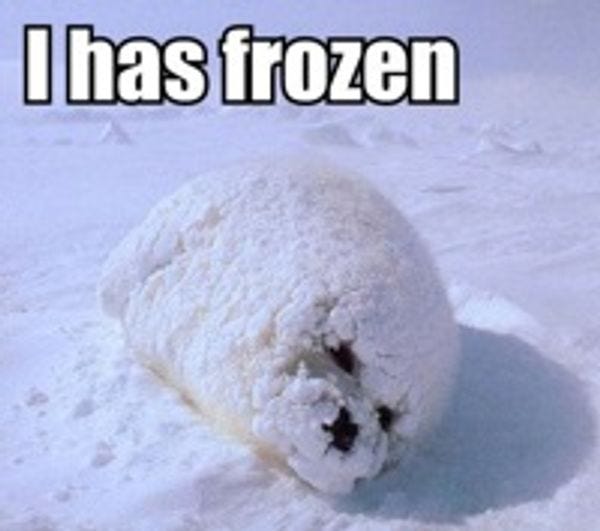 Yesterday people were just milling around very casually. Today there is a lot of purposeful striding, and the shoes are nicer. Another Hilltard conspiracy? When will an old lady trip over our crossed ankles and sue Wonkette out of existence for breaking her artificial hip? The only warm thing in the whole building is the laptop. Make the freezing go away, sweet laptop.