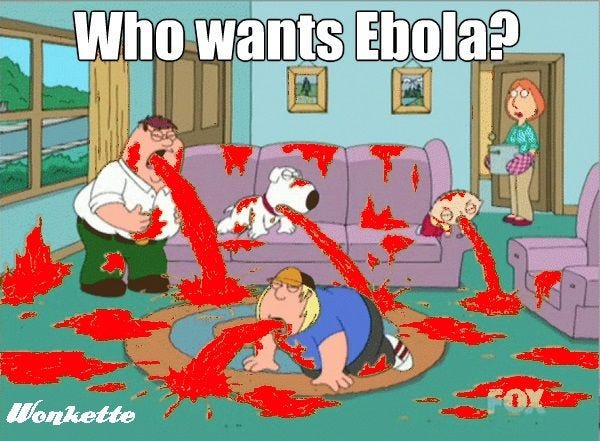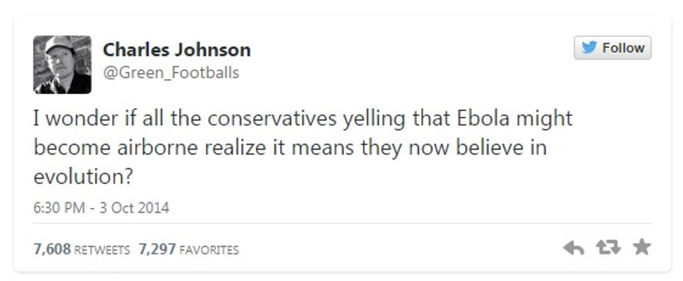Say, speaking of rightwing fears that the Ebola virus is right on the verge of mutating into a form that can be transmitted just by breathing (another fear virologists say is extremely unlikely, ) let us just share with you this intriguing brain-teaser from blogger Charles Johnson: