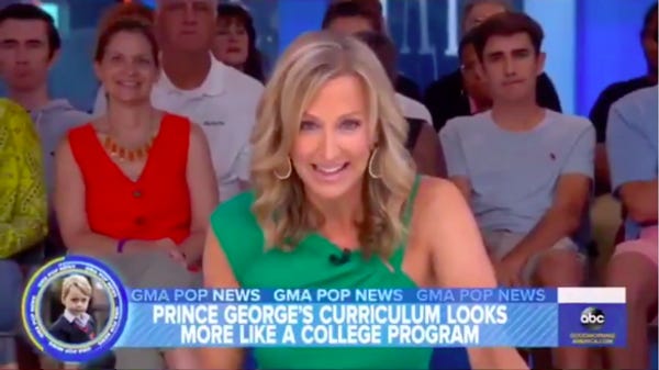 Lara Spencer giggled like a mean girl on national TV yesterday because a young boy is interested in ballet. The child is Prince George, the 6-year-old future king of England. We're less clear on Spencer's cultural importance, but we did some digging and it turns out she's a co-anchor on ABC's "Good Morning America." She couldn't stumble her way through an innocuous "pop news" segment without reminding England yet again why it's better off without the former colonies.