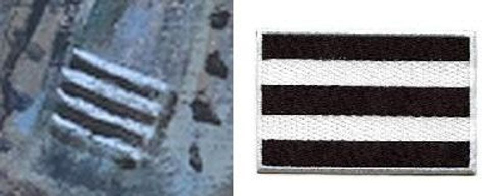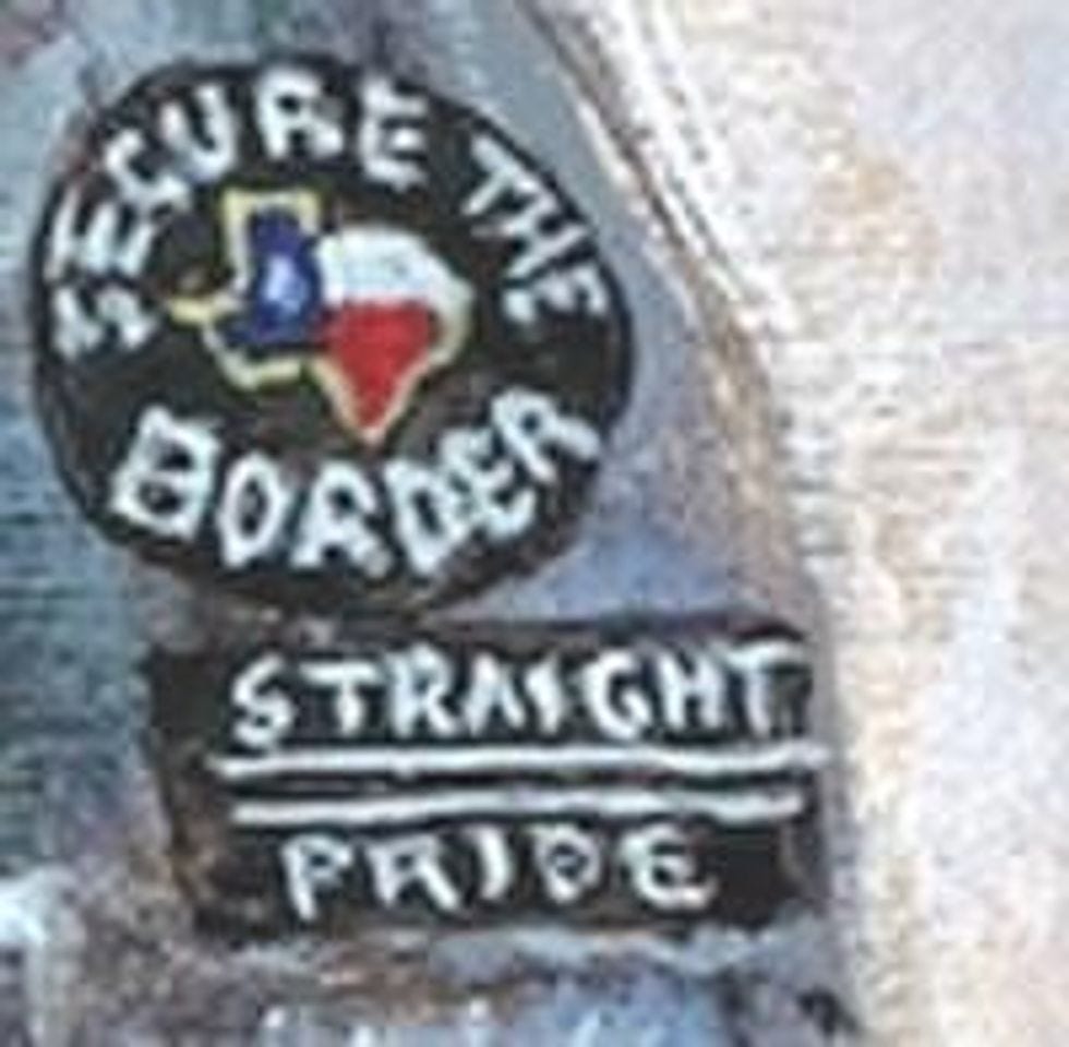 "Straight Pride" patch, which is not based on a real design as far as we can tell. McNaughton also includes what's purported to be a "straight pride" flag on our dude's jacket, a bit of iconography I'd never seen until just now. McNaughton apparently doubted his customers would recognize it, so he added that other patch with the words spelled out.