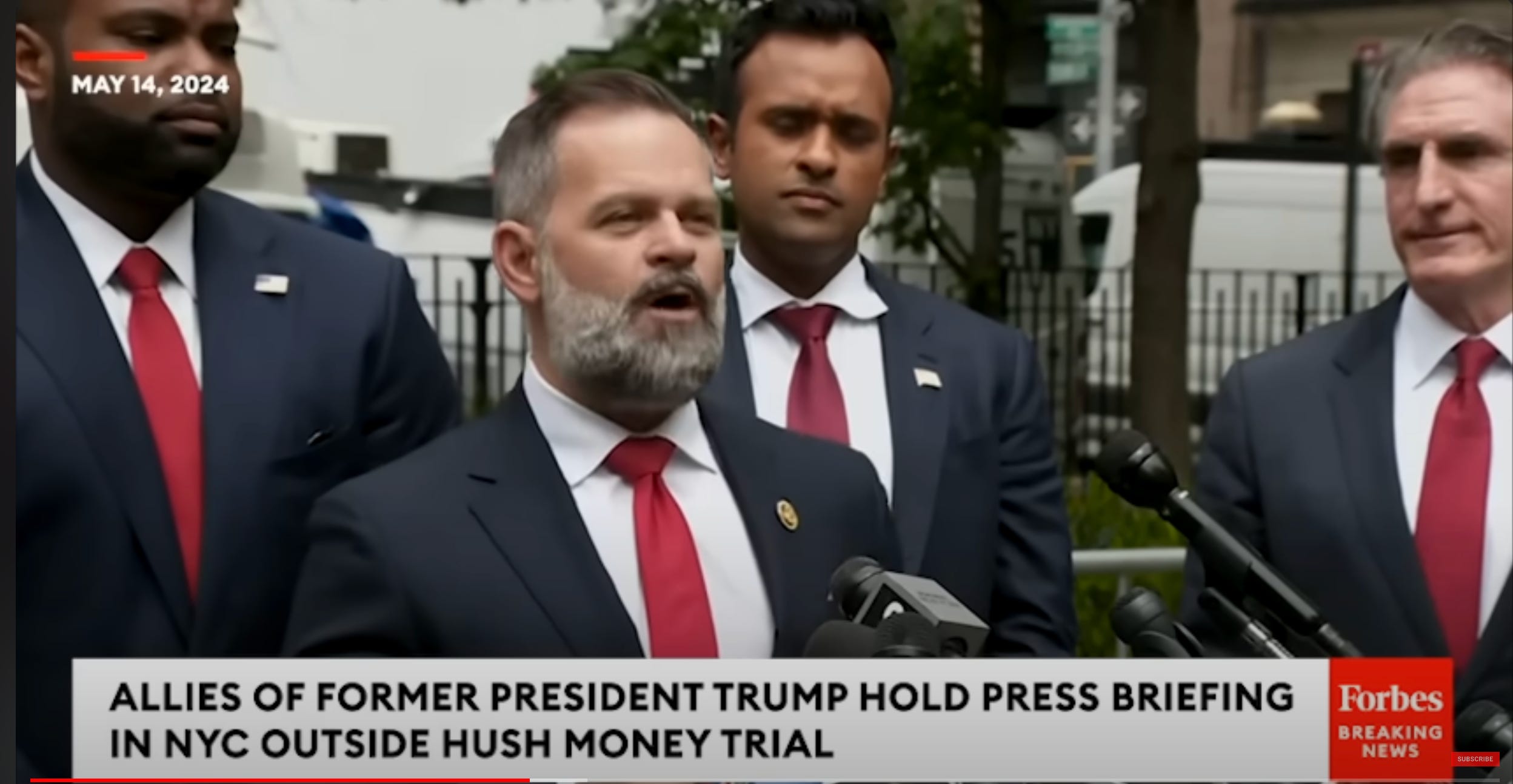 Every day this week, there’s been a small parade of MAGA idiots showing up outside the Trump trial in New York to pay their respects and worship their god, and for no other discernible purpose. On Monday, it was Republican Senators JD Vance and Tommy Tuberville. Vance didn’t say anything of substance, as piles of shedded human butthair rarely do. Tuberville bitched and moaned that it was too depressing inside the courtroom, and nobody would call Donald Trump “Former President Trump.”