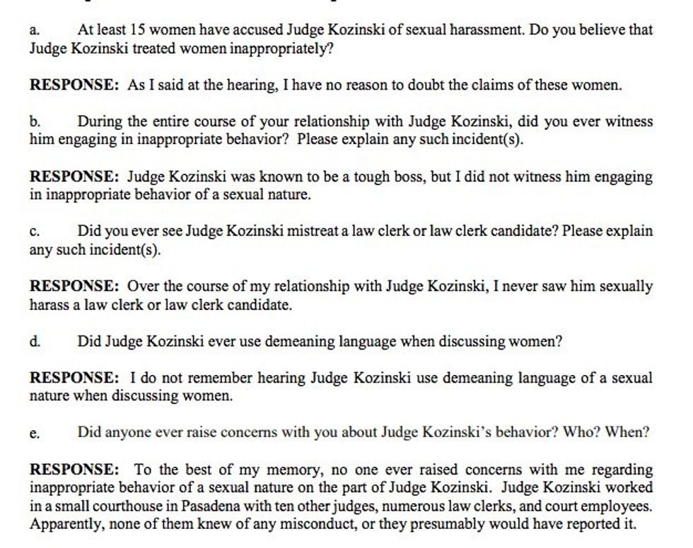 Wherein Brett Kavanaugh responds to senators' written questions by explaining nothing.