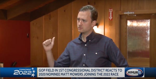 Broadcast journalist and candidate Gail Huff Brown plainly states, "We cannot nominate somebody to go to Congress who breaks the law and commits voter fraud. So, I do believe that Matt Mowers needs to think about his campaign, thinks about whether he drops out, thinks about whether he goes back to New Jersey.” Brown, who’s married to former Massachusetts Senator Scott Brown, is also a MAGA convert who promotes the Big Lie and has abandoned her previous support for abortion rights. She now calls herself a “mix of pro-life and pro-choice,” which is just pathetic.