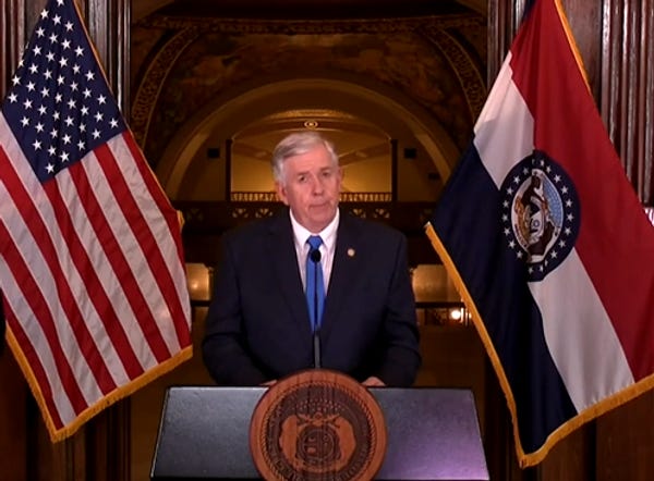 The Missouri State Medical Association has been pleading with Parson for a statewide stay-at-home order. The pediatricians have been pleading. The nurses have been pleading . The mayors of the large cities have been pleading. But no dice yet. (They're reviewin' it, though! Maybe he will announce one late this afternoon at his briefing?)