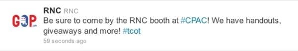 According to the RNC's Twitter droppings, handouts and giveaways are actually Patriotic, so long as they are given to wall-eyed fetus fetishists at CPAC and not the 670 million poors currently bankrupting the Federal treasury. Jim Newell, please enjoy your courtesy racist Barack Obama USB dongle! [ RNC ]