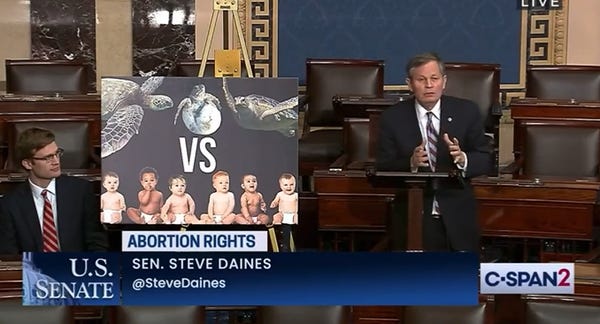 Daines on Abortion: Why do we have laws in place to protect the eggs of a sea turtle or the eggs of eagles…pic.twitter.com/yr0dM7aaAs