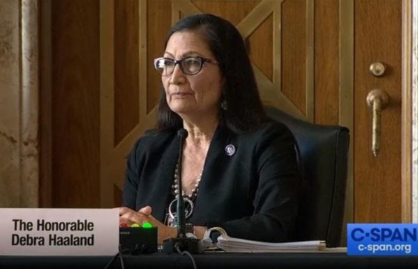 Haaland has often said that, as a "35th-generation American," her heritage as a member of the Laguna Pueblo tribe will help make her a good manager of public lands. If confirmed, she would be the first-ever Native American cabinet secretary, but Native News Online points out that, in the first day of the hearing at least, not a single Republican on the committee bothered to make note of that bit of history. That's even though five Republicans on the committee — Barrasso, Steve Daines, Lisa Murkowski, James Lankford, and John Hoeven — are current or former members of the Senate Committee on Indian Affairs. Not much of a surprise -- they came to bury Haaland, not to suggest her nomination is significant in any way.