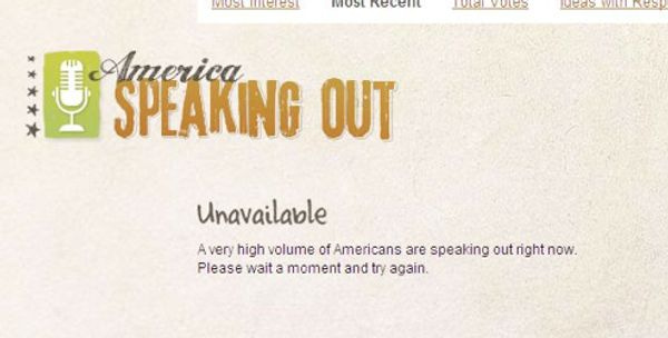 Several friendly jackass readers have notified your Wonkette of the current status of the GOP's new comedy website, America Speaking Out. Apparently so many brilliant American political/policy strategists are trying to type in cock jokes that the website -- which Rep. Kevin McCarthy was only able to create after he "personally traveled to Washington state and discovered a Microsoft program that helped NASA map the moon" -- is now acting like a lazy Muslim. How are Wonkette-Americans going to write Dana Milbank's columns for him from now on, given this roadblock? (Oh look, it's working now! Not working. Working! Whatever.) [ America Speaking out via operatives "Max B" and Blogslut]
