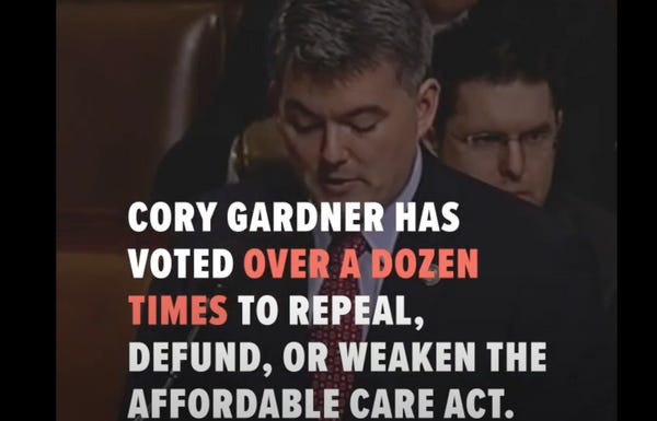 Gardner built his entire Congressional career on the premise that certain people just don't deserve health care. It's taken him a while, but he's finally embarrassed by what he's done. He's even removed his pro-repeal position from his campaign's website. Gardner's opponent in the upcoming Senate race, former Governor John Hickenlooper, is running offensive on the Affordable Care Act and not letting Gardner hide from his record. This flips the script on the 2014 Senate election. The healthcare law hadn't fully taken effect yet so Republicans could lie their asses off about it. Now, Republicans are lying about supporting all the popular elements of the ACA, specifically protections for pre-existing conditions.