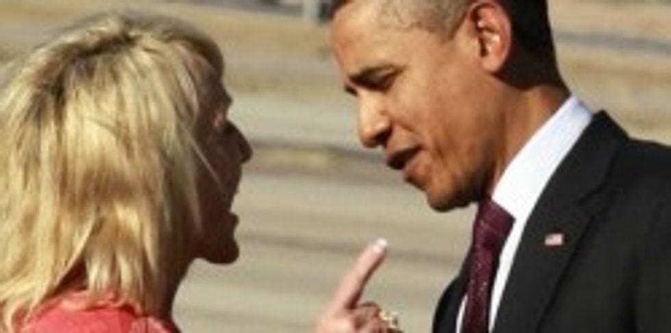 Hey, boys and not-boys, remember when Arizona Gov. Jan Brewer was kind of a Republican hero because she would literally get all up in President Obama's face and tell him what's what, and she waged full-on, non-stop nukular war on the Messicans , and she stood up for the sanctity of life of guns , and she let people who couldn't afford health caredie because if they didn't want to die, they should have thought of that before they lived in Arizona, and some Republicans were even, all, "Hey, she should run for president!" because they (a) have an awesome sense of humor, and/or (b) they fuckinglovelosing.